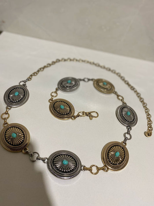 Cinto de corrente com Azul Turquesas